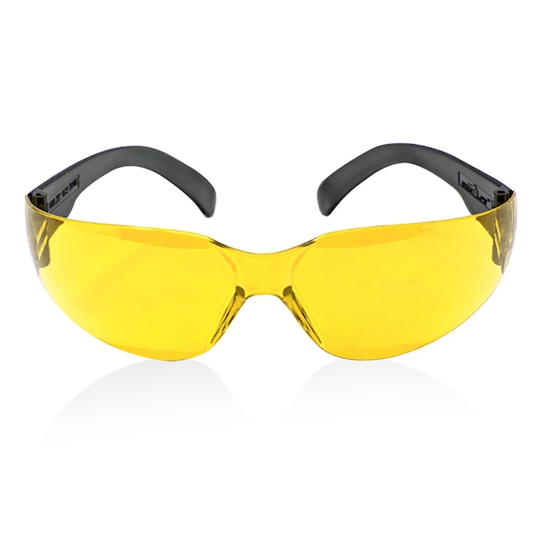 Safety Glasses, Anti-Scratch, Yellow Lens, Black Frame