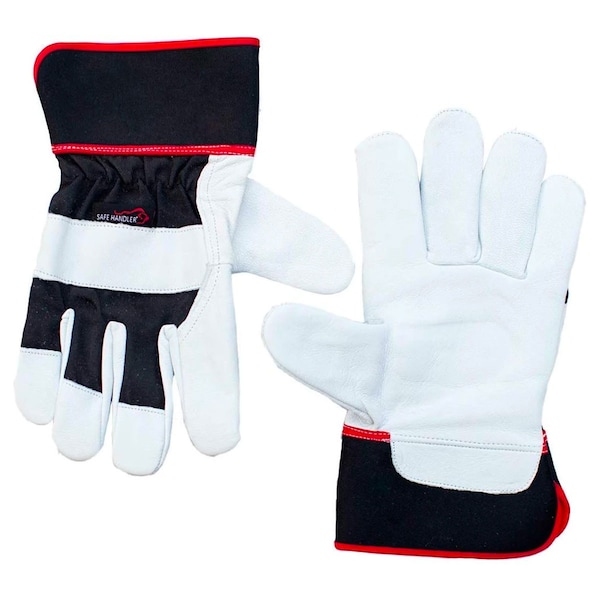 SAFE HANDLER X Grip Buffalo Leather Gloves,Color-Black/White/Red, OSFM, 1 Pair/Polybag