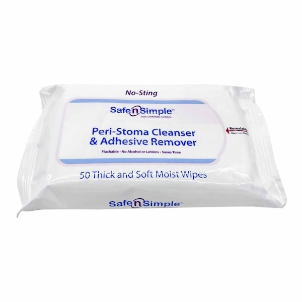 These adhesive remover wipes are gentle on the skin while helping to clean it The no-rinse formula eliminates the need for water The alcohol-free Safe n Simple adhesive remover prevents discomfort during use The wipes improve the adhesion of pouches to the skin to help keep them in place These wipes come in a resealable pouch of 50