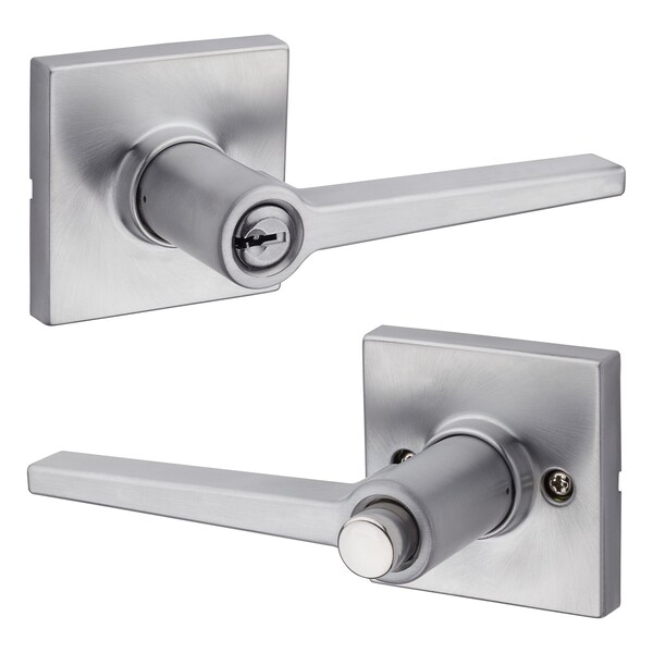 Daylon Lever, Square Rose Push Button Entry Lock, RCAL Latch and RCS Strike Satin Chrome Finish