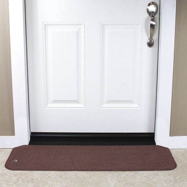 Door Ramp, Ceramic-Coated Finish, Brown, Material Polymer, Width 42 in, Length 12 1/4 in, Height 1 1/8 in, Surface Type Flush, Standards Industry ADA Compliant
