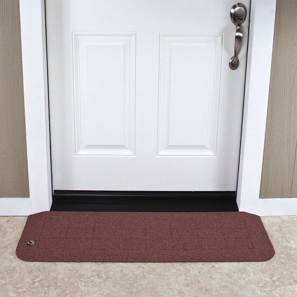 Door Ramp, Ceramic-Coated Finish, Red, Material Polymer, Width 42 in, Length 12 1/4 in, Height 1 1/8 in, Surface Type Flush, Standards Industry ADA Compliant