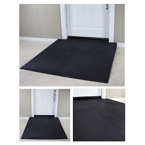 Door Ramp, Matte Finish, Black, Material Rubber, Width 48 in, Length 56 in, Height 4 1/2 in, Surface Type Flush, Standards Industry ADA Compliant