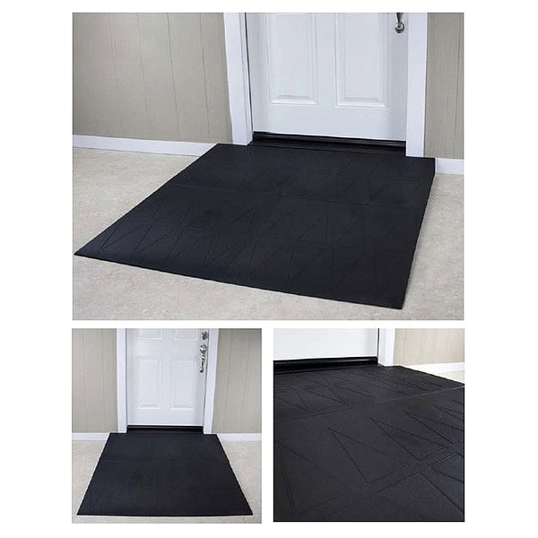 Door Ramp, Matte Finish, Black, Material Rubber, Width 48 in, Length 59 1/2 in, Height 4 3/4 in, Surface Type Flush, Standards Industry ADA Compliant