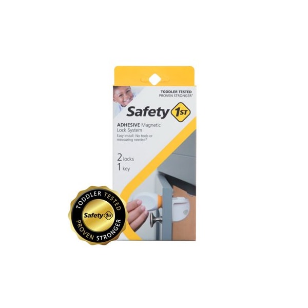 Adhesive Magnetic Safety Lock System, Includes 2 Locks 1 Key, 3M Adhesive Provide A Powerful, Secure Hold While Making It Easy To Install, Each Lock Includes A Plastic Template For Perfect Installation Alignment, No Tools Needed For Most Cabinets, Some Materials, Such As Particle Board, Require The Use Of Screws, Included, Operates With A Magnetic Key That Stores Easily Up High Out Of Child's Reach, Lock Installs Inside Cabinet Or Drawer For An Invisible Safety Solution, Disengages For Periods Of NonUse