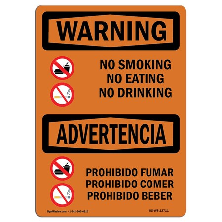 OSHA WARNING Sign, No Smoking Eating Drinking Bilingual, 18in X 12in Alum, 12" W, 18" L, Landscape