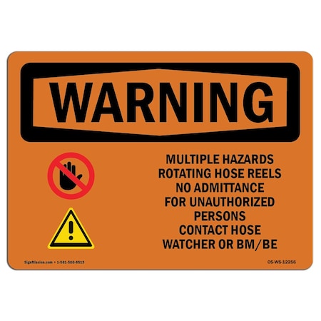 OSHA WARNING Sign, Multiple Hazards And Rotating, 14in X 10in Aluminum, 10" W, 14" L, Landscape