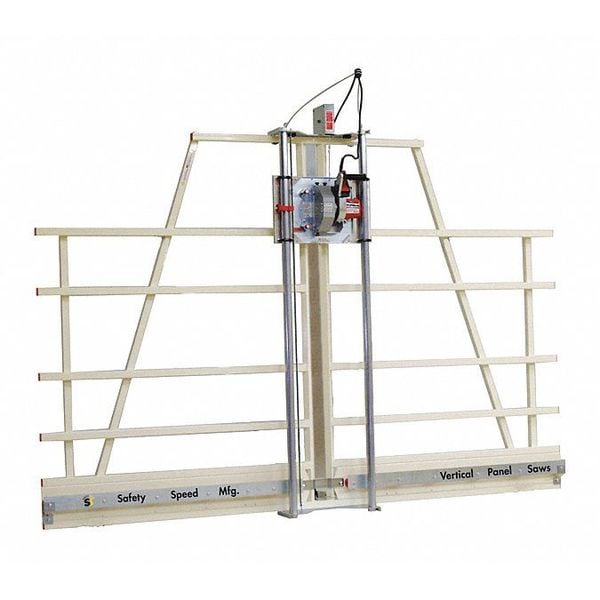 Panel Saw, Corded, H Series, Blade Dia. 8 in, Max. Blade Speed 5,800 RPM, Arbor Size 5/8 in, Current 15 A, Horsepower 3.3 hp, Cutting Thickness 1 3/4 in, Cutting Height 64 in, Panel Saw Type Saw, Cutting Direction Horizontal, Vertical, Overall Height 90 in, Overall Length 120 in, Voltage 120 V AC, Phase Single-Phase, Cord Length 20 ft, Includes Manual, Saw, Welded Frame