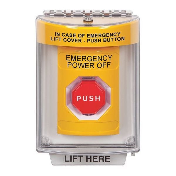 Exit Push Button, Material Polycarbonate, Color Yellow, Input Voltage 125/250V AC, 30V DC, Standards UL and cUL Listed, Includes (2) Form C Contacts, ADA Compliant Yes