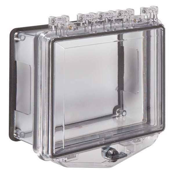 Enclosure, Open Back, Color Clear, Material Polycarbonate, Mounting Surface, Width 7 3/4 in, Depth 4 in, Height 5 3/4 in, Diameter 7 3/4 in, For Use With Annunciators, Keypads, Operating Temp. -40 Degrees to 250 Degrees F, Features Helps Protect Device Against Vandalism and Accidental Damage, Includes Mounting Hardware