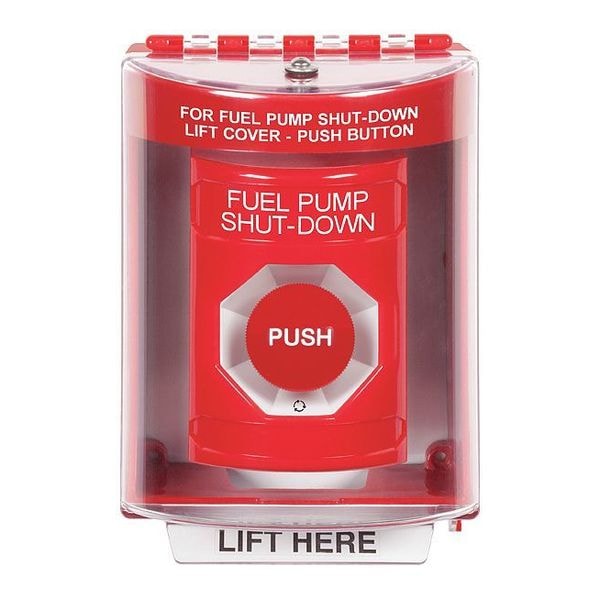 Fuel Pump Shutdown Push Button, Switch Action Turn-to-Reset, Material Polycarbonate, Color Red, Input Voltage 250V DC, 600V AC, Standards CSA C22.2 No. 205, UL 294 (Models Used with LT-1UL), UL and cUL Listed No. S7255, For Use With Access Control, Emergency Systems, Includes NO and NC Contact, Exit Device Type Not Applicable, ADA Compliant Yes