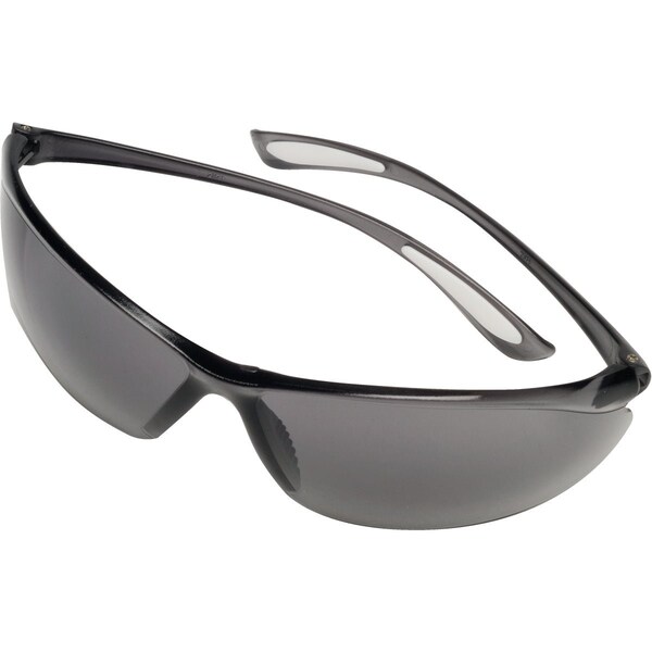 Lightweight stylish safety glasses with gray lens provide maximum ultra violet protection. Features a cushioned nose bridge and soft flexible temples for added comfort.