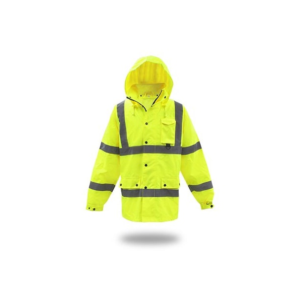 Medium, High Visibility Yellow, Waterproof Polyester Lined Jacket, 100 Polyester 300D Oxford PU Coated, Reflective Striping, 100 Polyester Mesh Lining, 2 Lower Pockets With Snaps, Cell PhoneRadio Pocket, ANSIISEA 1072015 Type P, Class 2 If A Supplemental Class E Pant Is Worn With A Performance Class 2 Or 3 Jacket, Ensemble Becomes Performance Class 3, Recommended For Use With Pant 3NR3000