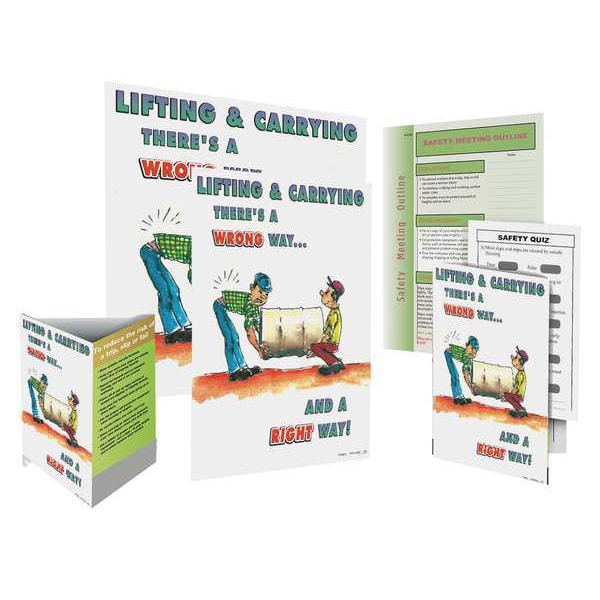 Training Kit, For Use With Not Applicable, Format Card, Outline, Poster, Signs, Height 24 in, Includes 22 in x 17 in Poster, Safety Meeting Outline, (2) 17 in x 11 in Posters, (2) Table Tent Signs, (25) Employee Quiz Cards, Number of Users Supported 25, Operating System Requirements Not Applicable, Product Type Training Kit, Regulations Covered Based on Industry Best Practices, Software Delivery Method Not Applicable, Subject Matter Workplace Safety, Supported Languages English
