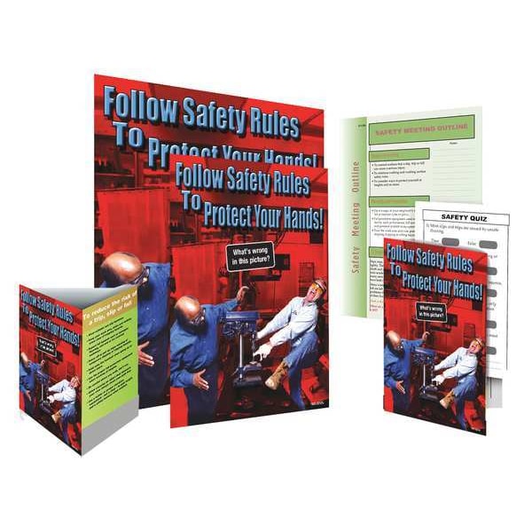 Training Kit, For Use With Not Applicable, Format Card, Outline, Poster, Signs, Height 24 in, Includes 22 in x 17 in Poster, Safety Meeting Outline, (2) 17 in x 11 in Posters, (2) Table Tent Signs, (25) Employee Quiz Cards, Number of Users Supported 25, Operating System Requirements Not Applicable, Product Type Training Kit, Regulations Covered Based on Industry Best Practices, Software Delivery Method Not Applicable, Subject Matter Workplace Safety, Supported Languages English