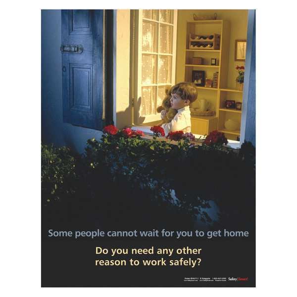 Safety Poster, Shape Vertical Rectangle, Safety Banner Legend Some People Cannot Wait For You To Get Home Do You Need Any Other Reason To Work Safely?, Sign Legend Style Symbol and Text, Printed Language English, Background Color Various, Number of Printed Sides 1, Width 17 in, Height 22 in, Thickness 0.005 in