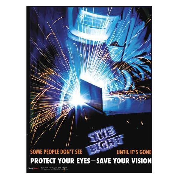 Safety Poster, Shape Vertical Rectangle, Safety Banner Legend Some People Dont See The Light Until Its Gone. Protect Your Eyes Save Your Vision, Sign Legend Style Symbol and Text, Printed Language English, Background Color Various, Number of Printed Sides 1, Width 17 in, Height 22 in, Thickness 0.005 in