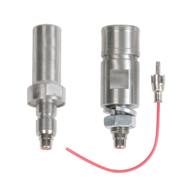 Stainless Steel Quick Disconnect KIT: Includes Powered Warning Whip Adapter and Introducing the Stainless Steel Quick Disconnect KIT, a comprehensive solution for your warning whip requirements. This kit features a Powered Warning Whip Adapter and a Powered Quick Disconnect Base with the RCA power connection point. The Powered Warning Whip Adapter effortlessly threads onto a threaded whip, converting it into a powered quick disconnect whip. Paired with the Powered Quick Disconnect Base equipped with the RCA connection and an included HP.2 (Hot Plug) for power connection, this kit streamlines the process of attaching and detaching your whip. Enjoy the ease of a single power lead for efficient use. Click the converted whip into place upon arrival, and swiftly remove and store it when leaving the site.