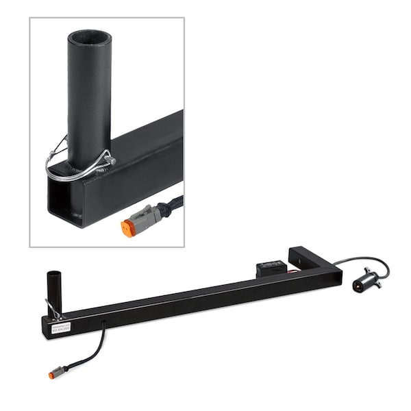 Enhance your safety protocols with our robust Heavy Duty Steel Hitch Mount featuring a Telescoping Whip Base. The power connection to the whip is seamlessly achieved through the Weatherproof Deutsch Connector, ensuring durability and reliability. This mount is equipped with a 7-Way Plug for a swift and easy power supply hook-up, along with a built-in 107db Backup Alarm for added safety. The LEFT SIDE OFFSET model is designed to allow positioning the Warning Whip to the left of the tailgate, enabling convenient opening and closing while the whip remains securely in place. Please note that the hitch pin and cotter pin are sold separately. Trust SafetyWhips for advanced safety solutions that prioritize your well-being.
