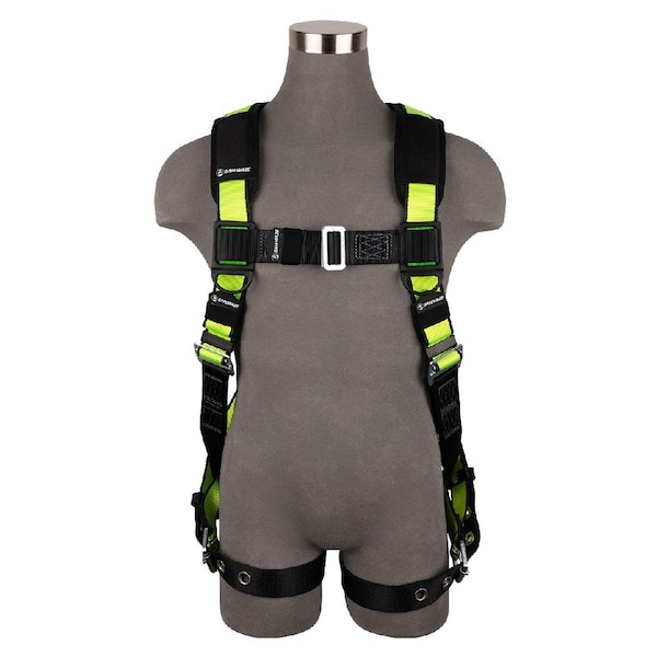 PRO Full Body Harness: 1D, MB Chest, TB Legs The PRO Harness is a dependable workhorse, incorporating premium features for outstanding performance. Built with ergonomically designed padding and high-vis abrasian-resistant green webbing. Models equipped with corrosive resistant steel-plated D-rings, buckles and quick-connects. Offered in a variety of configurations.Attachment Points 1 dorsal D-ringWeight 3.5 lbs. 1.6 kgANSI Weight Capacity 130-310 lbs. 59-141 kgOSHA Weight Capacity Up to 420 lbs. 191 kgANSI Standards Z359.11-2021OSHA Standards 1926.502, 1910.140