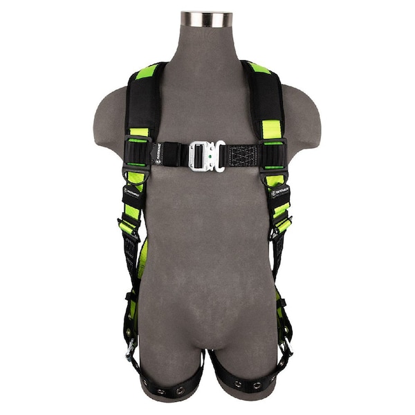 PRO Full Body Harness: 1D, QC Chest, TB LegsThe PRO Harness is a dependable workhorse, incorporating premium features for outstanding performance. Built with ergonomically designed padding and high-vis abrasian-resistant green webbing. Models equipped with corrosive resistant steel-plated D-rings, buckles and quick-connects. Offered in a variety of configurations.Attachment Points 1 dorsal D-ringWeight 3.4 lbs. 1.5 kgANSI Weight Capacity 130-310 lbs. 59-141 kgOSHA Weight Capacity Up to 420 lbs. 191 kgANSI Standards Z359.11-2021OSHA Standards 1926.502, 1910.140