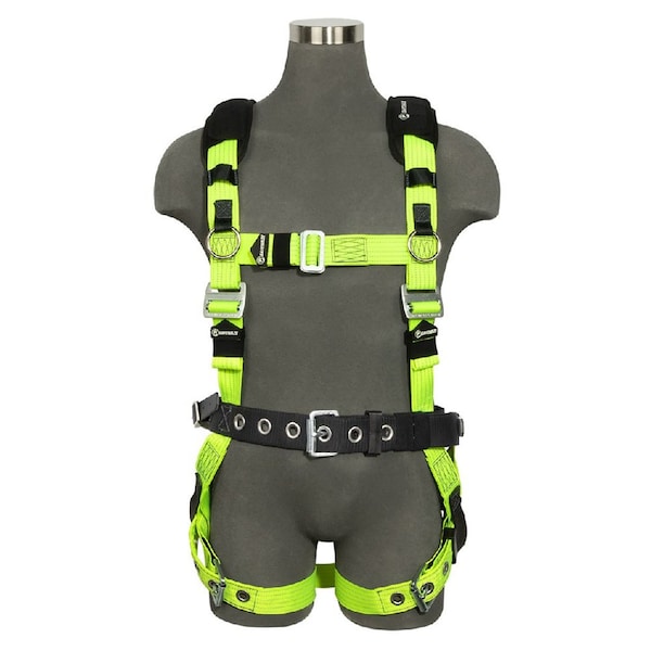 Reflective Full Body Harness: 1D, MB Chest, TB legs, Mining beltThe Reflective Full Body Harness is designed specifically with the mining industry in mind featuring reflective webbing to ensure visibility in dark environments plus hands-free storage with multiple attachments: tool rings and radio loops on torso, a tool strap on each hip and adjustable mining belt for lamp and battery. Easy pull-down adjustment with fixed mating buckle chest and removable shoulder pad provided ensure a comfortable fit.Attachment Point 1 Dorsal d-ringWeight 4.6 lbs. 2.1 kgANSI Weight Capacity 130-310 lbs. 59-141 kgOSHA Weight Capacity Up to 420 lbs. 191 kgANSI Standards Z359.11-2021, 107-2021OSHA Standards 1926.502, 1910.140