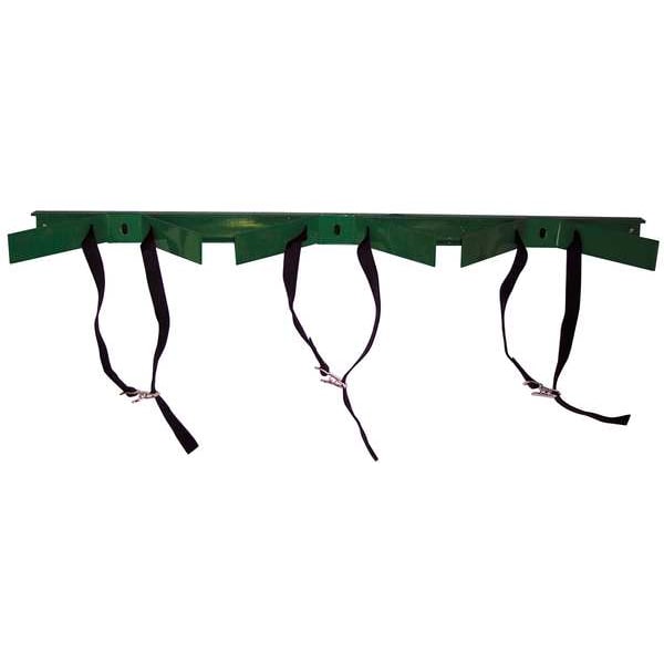 Cylinder Bracket, Number of Cylinders Held 3, Compatible Cylinder Diameter (Maximum) 10 in, Compatible Cylinder Diameter (Minimum) 9 1/2 in, Cylinder Securing Mechanism Strap with Cinch Buckle, Bracket Material Iron, Overall Width 42 in, Overall Height 3 in, Overall Depth 6 1/2 in, Mounting Location Wall, For Use With High Pressure Cylinder