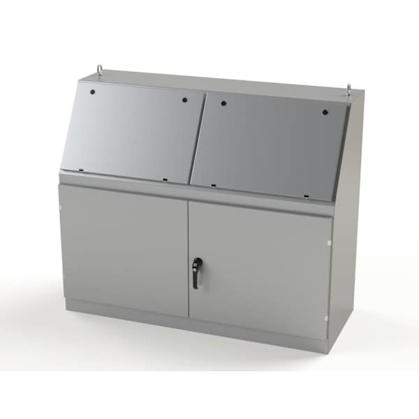 Designed for electronic controls and instruments. Equipment can be mounted on the sloping control panel door. Interior components mount to stationary panels. Heavy duty construction provides protection from dirt, oil, dust, and water
