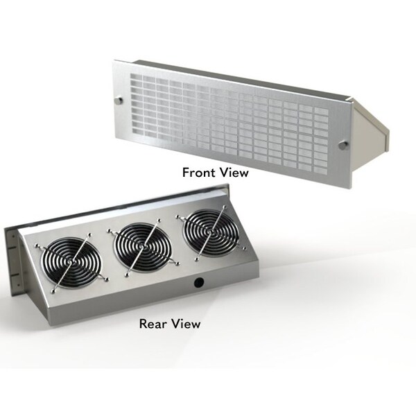 - •Designed for use in enclosures that require cooling but have limited space. Consists of a washable aluminum air filter, steel air plenum, removable stainless steel grille. Grille has captivated thumbnuts for easy access to the filter from the outside. Fan is 115 or 230 volt AC 60/50 Hertz (HZ). The 125 degree angled design provides greater air movement within the enclosure. Air plenum is ANSI 61 gray urethane polyester powder coated.