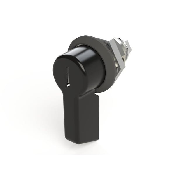 Black Keylocking Lever Knob for Miniature Quarter Turn. For use on custom and stock SCE ELJ enclosures, Hinged Window enclosures or Series 14 Console tops.
