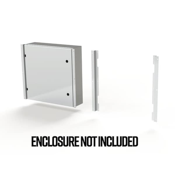- •Flush Mount Frames are designed for use with the Enviroline Wall-Mount Enclosures, quickly converting the wall mount enclosure to a flush mount enclosure. Two part numbers are required to complete the assembly, one part number for the height of the enclosure and one part number for the width of the enclosure. All kits are provided with hardware to assemble the frame to the enclosure and maintain the environmental rating of the enclosure. Frame is made of heavy gage steel.