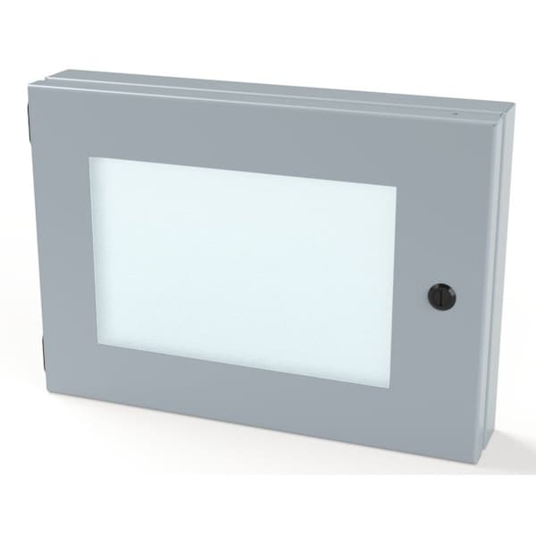 Designed to mount on the exterior of an enclosure to provide protection for controls with easy access. ELJ hinges. Black mini quarter turn latches. UV stable polycarbonate viewing window. Gasket and hardware included. For outdoor application a drip shield and drain vent is recommended