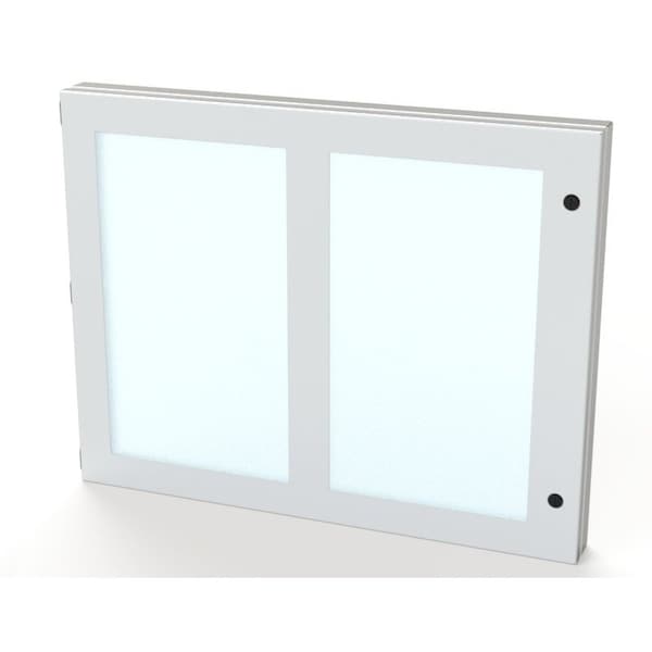 Designed to mount on the exterior of an enclosure to provide protection for controls with easy access. ELJ hinges. Black mini quarter turn latches. UV stable polycarbinate viewing window. Gasket and hardware included. For outdoor application a drip shield and drain vent is recommended