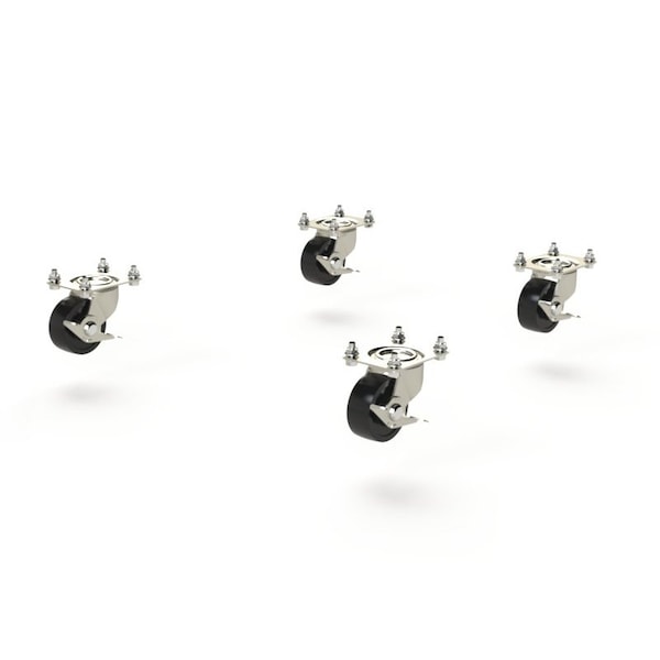 - •Set of 4 casters. Casters have ball bearing pivots and brakes. Load rating 250 lbs for each caster. Mounting hardware is included.