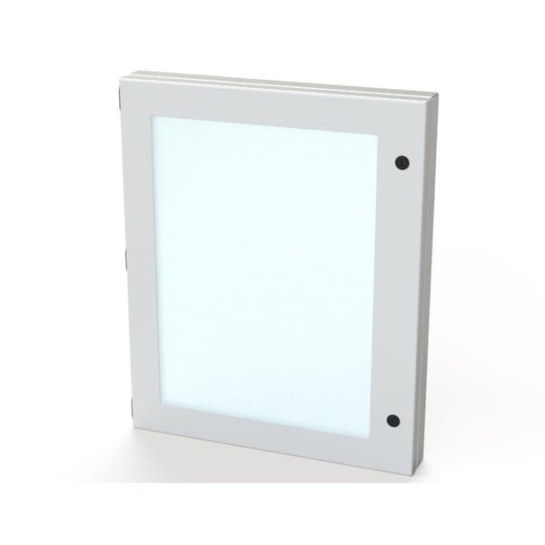 Designed to mount on the exterior of an enclosure to provide protection for controls with easy access. ELJ hinges. Black mini quarter turn latches. UV stable polycarbinate viewing window. Gasket and hardware included. For outdoor application a drip shield and drain vent is recommended