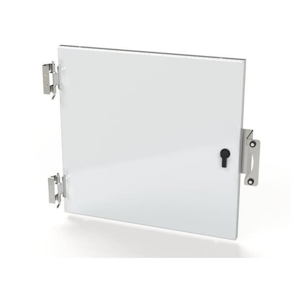 - •Designed for use in Wall Mount Enclosures with SCE concealed hinges. Dead front panels are designed as a fixed depth panel to be mounted directly behind the existing hinged door. This allows space to mount: gauges, meters and push buttons directly behind the front door making them easily visible when mounting them through the main door is not an option. Dead front panels also provide a barrier against incidental contact with live components during routine monitoring or maintenance of equipment. Dead front panels are installed by mounting hinges back to back with the existing door hinge of the enclosure and only adding two additional holes on the latching side of the enclosure to mount the latch brackets. Dead Front panels include quarter turn wing knobs for easy entry to the interior and mounting hardware to maintain the environmental rating of the enclosure.