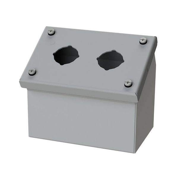 Designed to offer protection for all standard brands of oil-tight pushbuttons, switches, and pilot lights where slanted surfaces are desired. It offers protection from dust, dirt, oil and water.