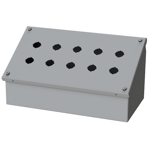 Designed to offer protection for all standard brands of oil-tight pushbuttons, switches, and pilot lights where slanted surfaces are desired. It offers protection from dust, dirt, oil and water.