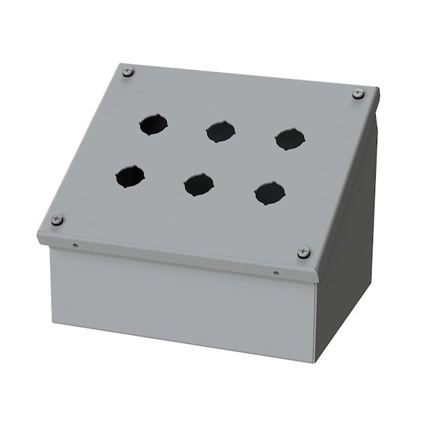 Designed to offer protection for all standard brands of oil-tight pushbuttons, switches, and pilot lights where slanted surfaces are desired. It offers protection from dust, dirt, oil and water.