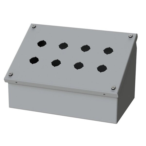 Designed to offer protection for all standard brands of oil-tight pushbuttons, switches, and pilot lights where slanted surfaces are desired. It offers protection from dust, dirt, oil and water.