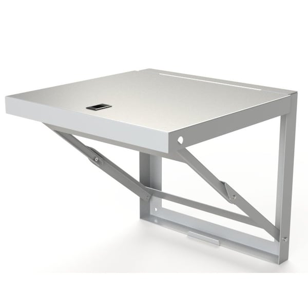 - •Folding shelves can be installed on the inside or outside of large enclosures. They are designed to support test equipment and programmers. Locks in the horizontal position. When not in use, shelf can be folded down. Made of heavy gauge steel and powder coated. "SS" parts are stainless steel Type 304 with #4 brush finish.