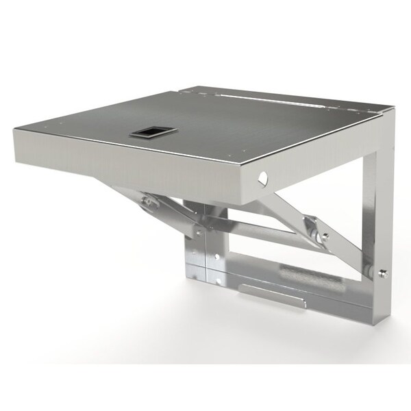 - •Folding shelves can be installed on the inside or outside of large enclosures. They are designed to support test equipment and programmers. Locks in the horizontal position. When not in use, shelf can be folded down. Made of heavy gauge steel and powder coated. "SS" parts are stainless steel Type 304 with #4 brush finish.