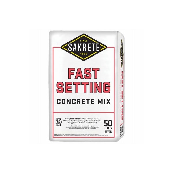 Sakrete, 50 LB, Fast Setting Concrete Mix, Mixture Of Portland Cement, Washed Graded Sand Gravel With Special Additives Specially Designed For The Fast Setting Of Posts Poles, PreBlended, No Tools Required, Simply Add Water, Ideal For Quick, High Strength Repairs Of Existing Concrete Surfaces, Sets In 30 Minutes For Fast, Same Day Use, Exceeds ASTM Specification C387