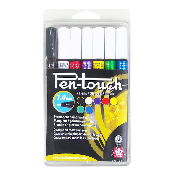 Clam Pentouch Fine, 0.1mm, Assorted: Yellow, Red, Purple, Green, Blue, White, Black, 7PK