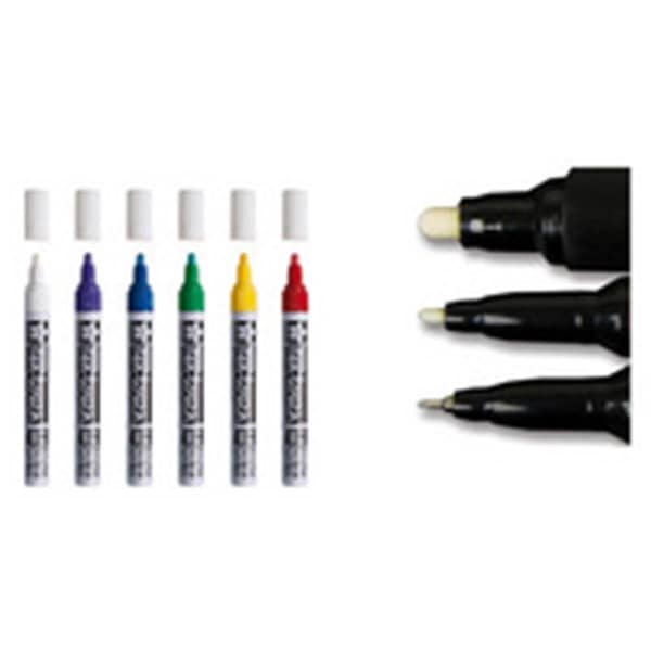 Features -Application & Technical Qualities - Writes on glass wood porcelain plastic paper and metal. -Shows best on non-absorbent surfaces like coated paper. -Archival quality paint - chemically stable waterproof and fade resistant. -Permanent adherence on most surfaces. -Not permanent on glass or ceramics. -Low odor and xylene free. -Not recommended for use on fabrics intended to be washed. -Not evaluated for cosmetic use on skin. -Meets ASTM and ACMI non-toxicity standards. -Color - Medium Purple.