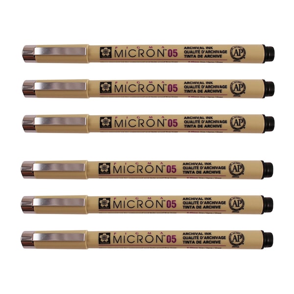 Pigma Micron Pen, Black, 0.45mm, Size 05, 6PK