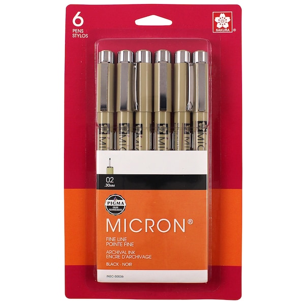 Pigma Micron Pens, Black, Size 02, Blister Card, 6PK