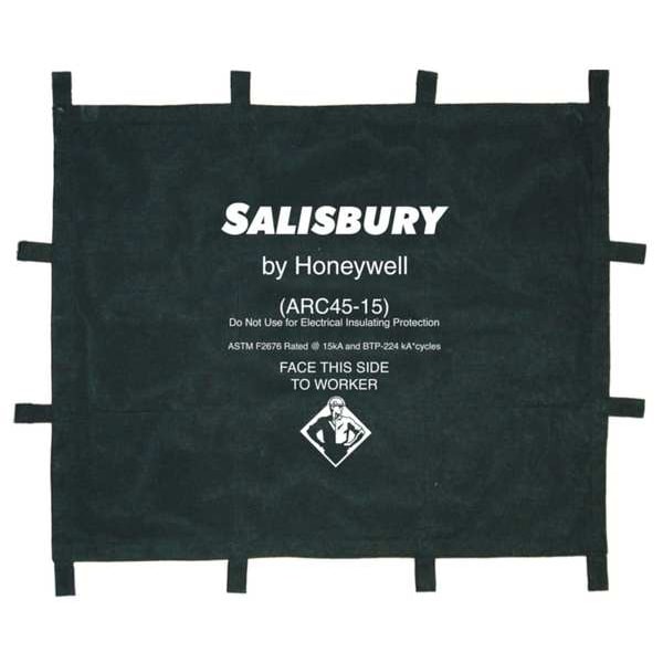 Arc Protection Blanket, Length 4 ft, Width 5 ft, 15 kA kA Rating, Navy Blue, Includes Storage Bag and Tie Straps, Standards ASTM F2676