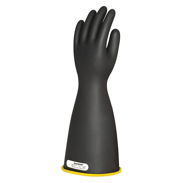Electrical-Insulating Gloves, Standards ASTM D 120, IEC EN60903, Brand and Series Salisbury E116YB, Cuff Style Straight, Cuff-End Color Yellow, Electrical Insulating Glove Color Black/Yellow, Electrical Insulating Type Type I, Glove Hand Style Left and Right, Glove Length 16 in, Glove Materials Rubber, Glove Size 9, Max. Use Voltage 7500V AC/11250V DC, Max. Use Voltage (AC) 7,500V AC, Max. Use Voltage (DC) 11,250V DC, Proof Test Voltage (AC) 10,000V AC, Proof Test Voltage (DC) 40,000V DC
