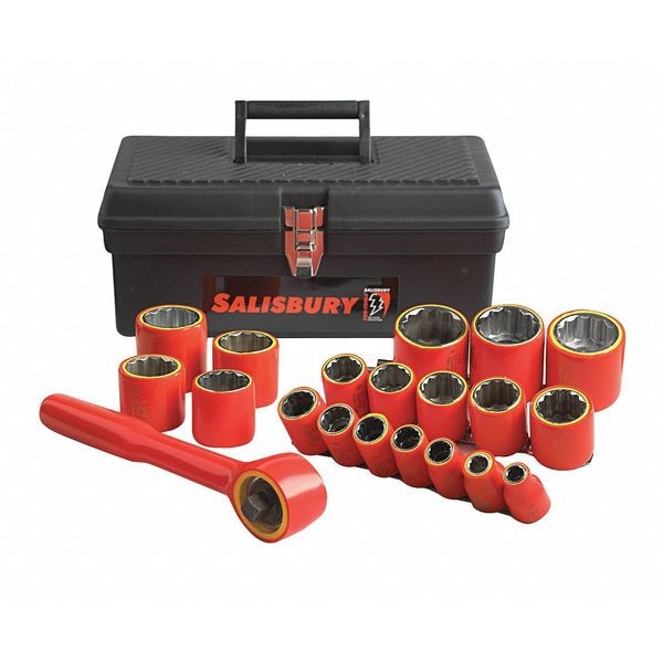 Insulated Socket Set, Standard Socket Style/Size 1 in, 1/2 in, 1/4 in, 11/16 in, 12 point, 13/16 in, 15/16 in, 3/4 in, 3/8 in, 5/16 in, 5/8 in, 7/16 in, 7/8 in, 9/16 in, Deep Socket Count/Style (2) 12-Point, Drive Size 3/8 in, Chrome